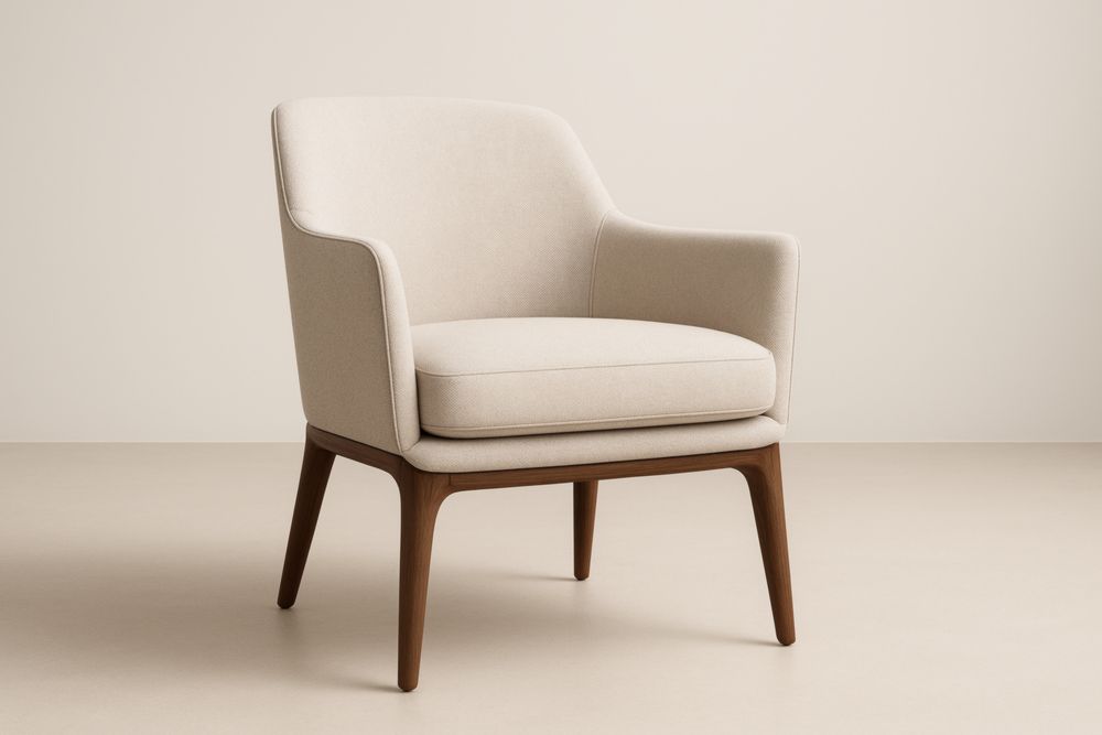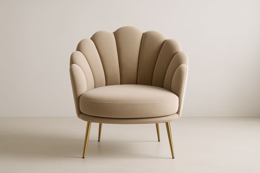 Poltrona in Tessuto Beige con Gambe in Metallo