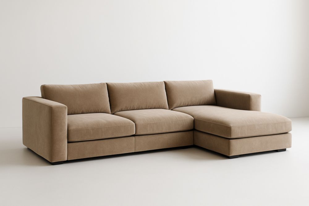 Divano a L con Chaise Longue in Tessuto Microfibra Beige