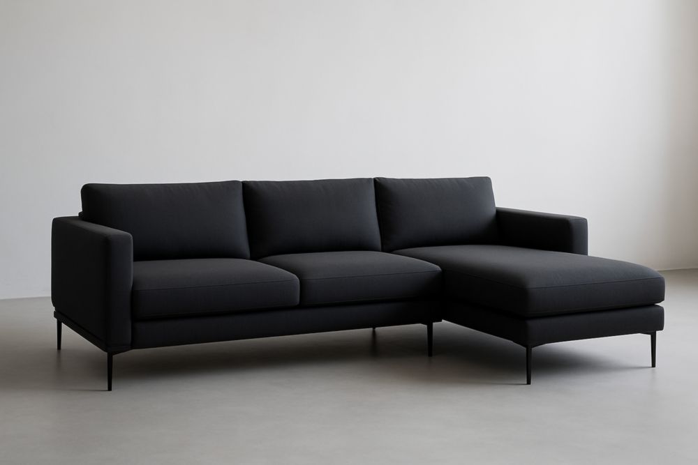Divano angolare nero in tessuto